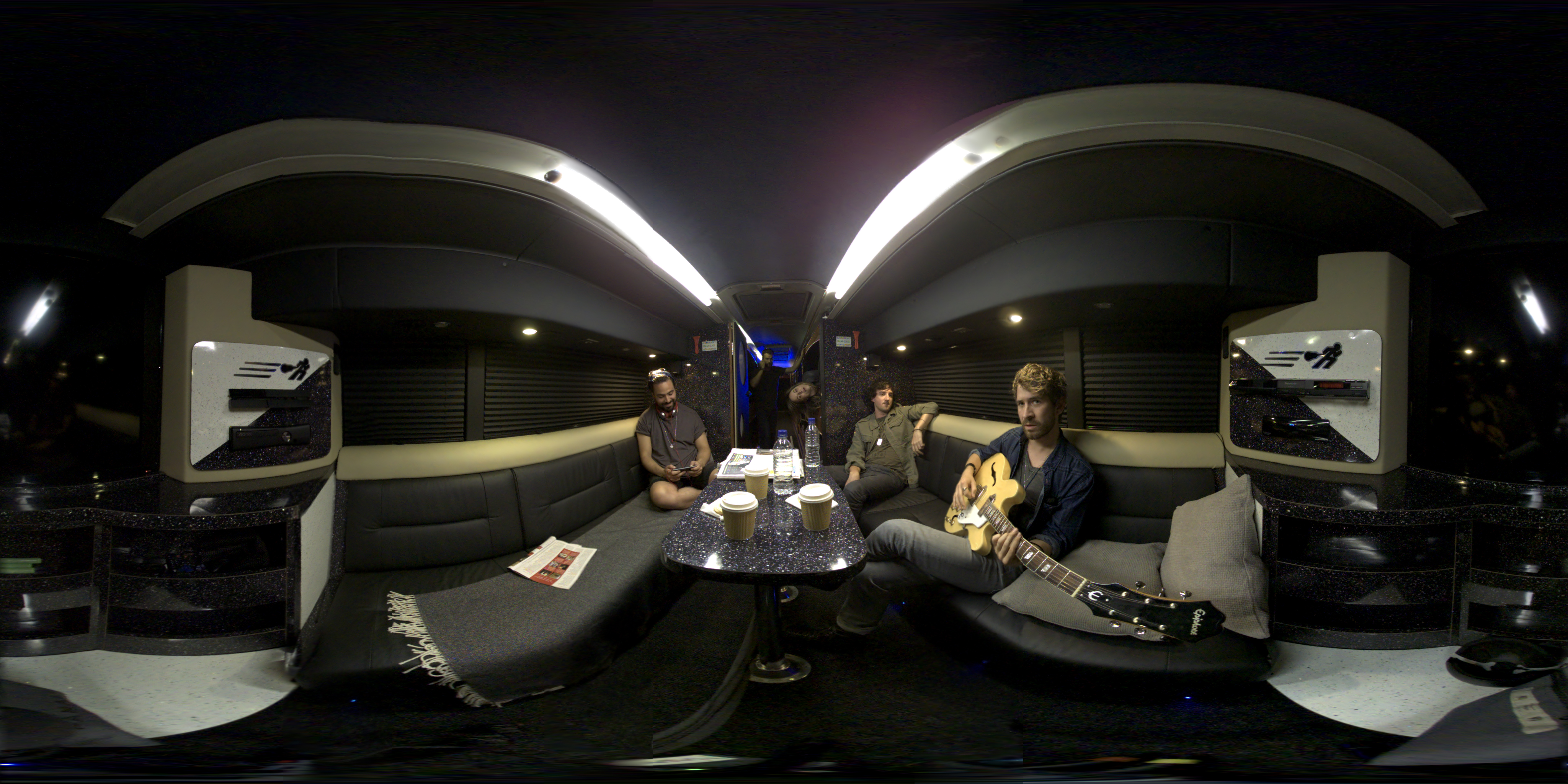 Tiny environment meant careful placement of cast. Lit by 2 x kino flo tubes and blue in the corridor