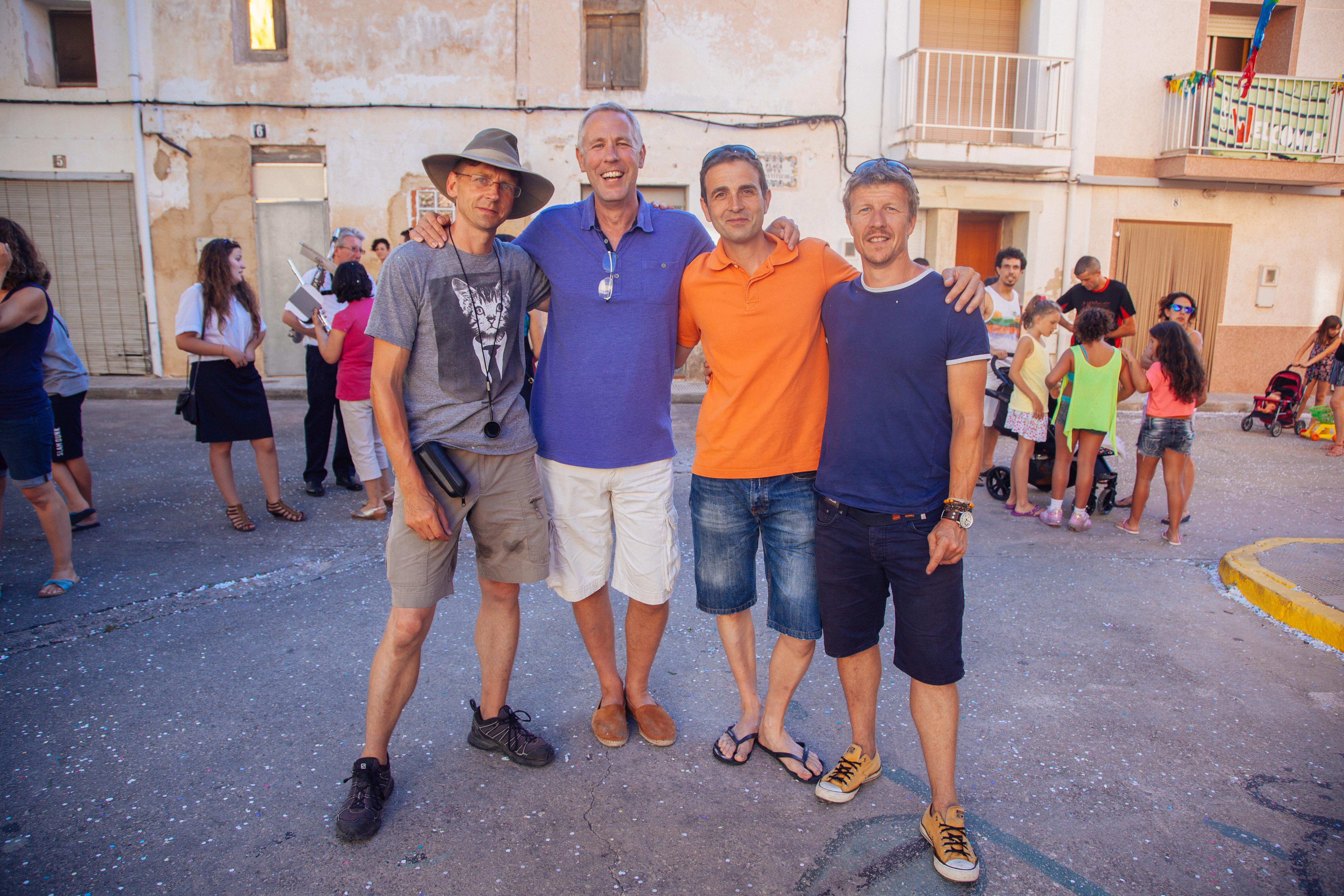 Happy faces on wrap, Nic Cornwall on right with the mayor of the village and writer/producer Jonathan Hall