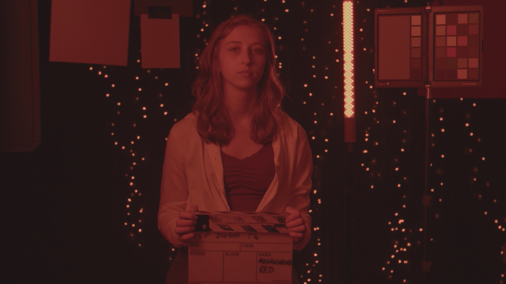 Frame grab of result with monochrome red filter applied.